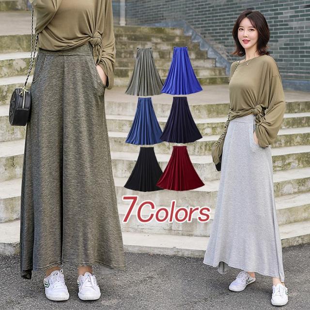 ロングスカート 秋冬 フレア aライン マキシ丈 無地 大きいサイズ レディース コットン 綿 ボトムス シンプル フェミニン ウェストゴム 可愛い お洒落 二次会