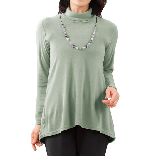 日本製 eclaT style(R) ふんわり美丈チュニック 全4色 ハイネック チュニック カットソー レディース 婦人服 ミセス シニア 女性 ブラック グリーン ブラウン グレー 無地 シンプル 吸湿発熱 体型カバー シニアファッション 40代 50代 60代 70代 80代 母の日 お母さん 秋物 冬物 秋冬
