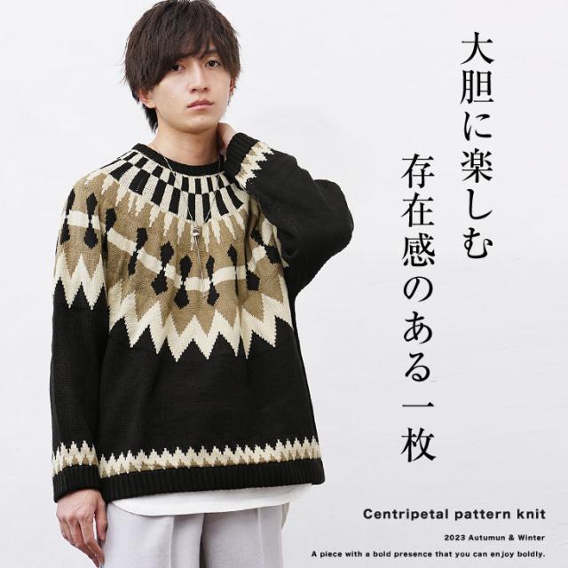 「大胆に楽しむ、存在感のある一枚。」求心柄ニット
