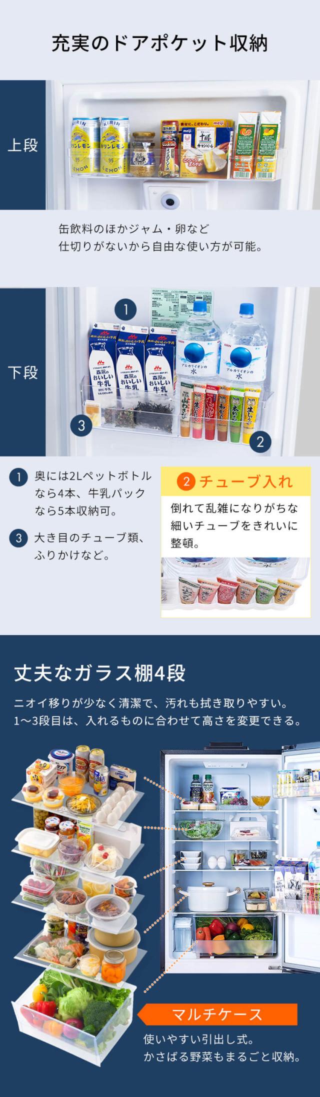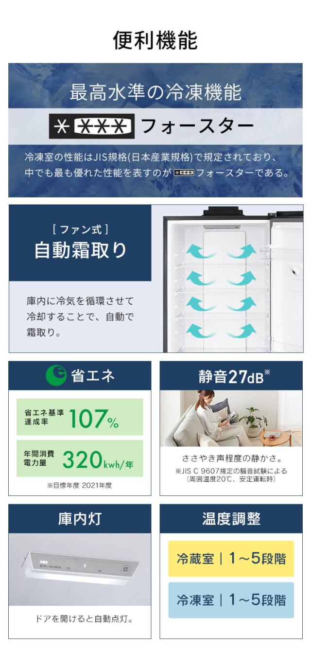 ※1:定格内容積は、日本工業規格(JIS C9801-3:2015)に基づき、庫内の温度制御に必要でない部品(ケースなど)を外した状態で算出しています。