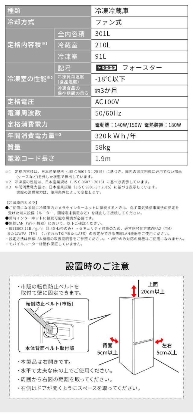 全定格内容積:301L