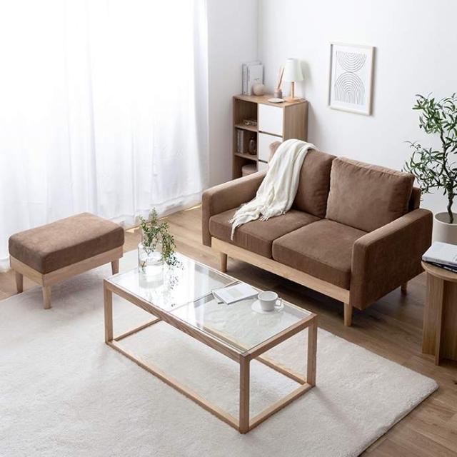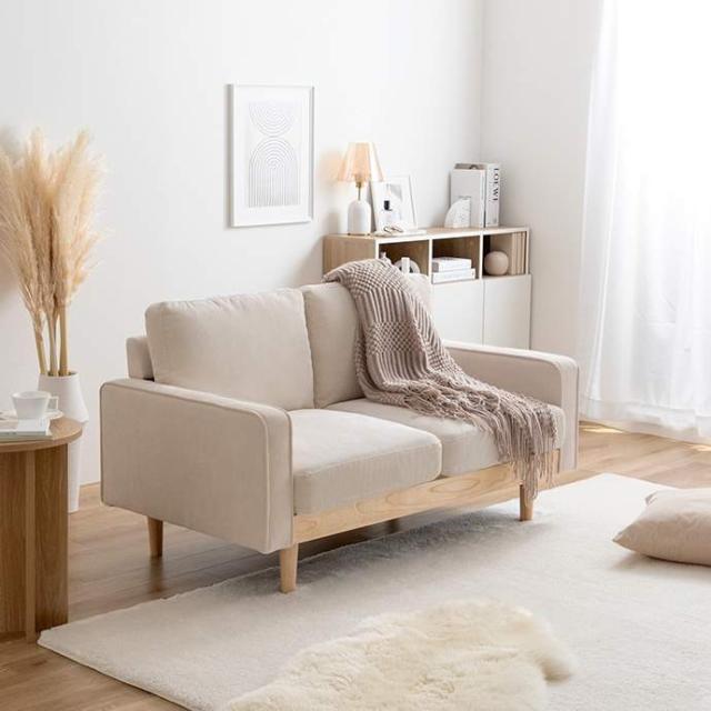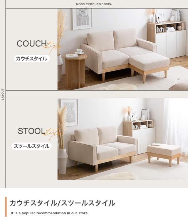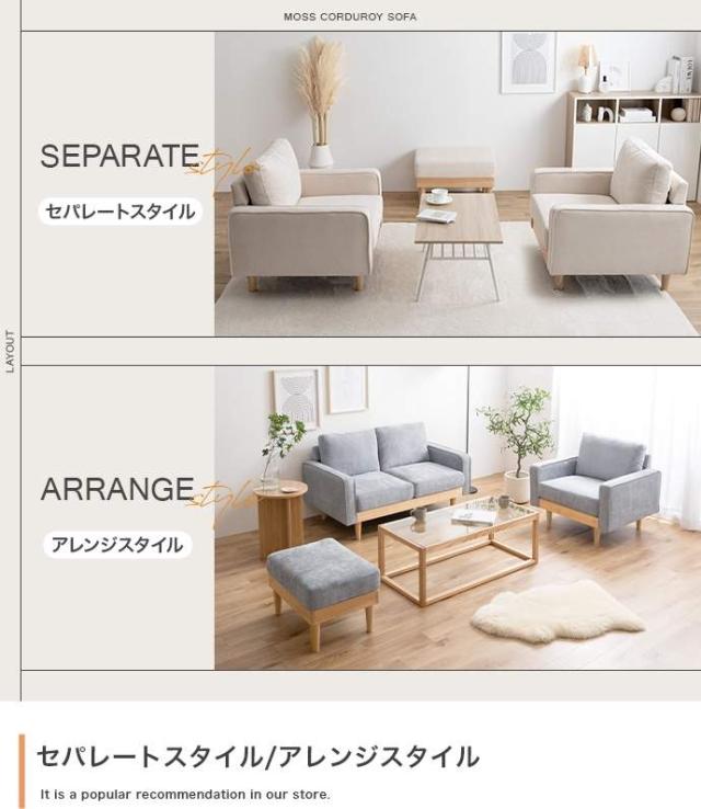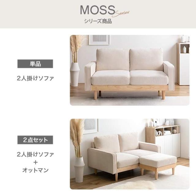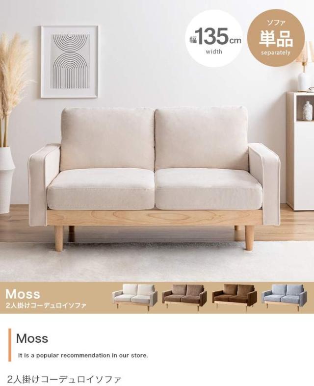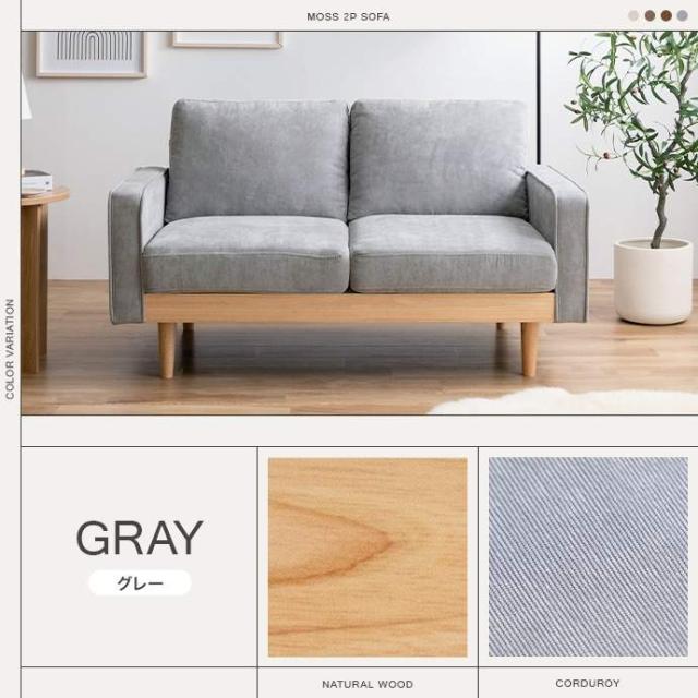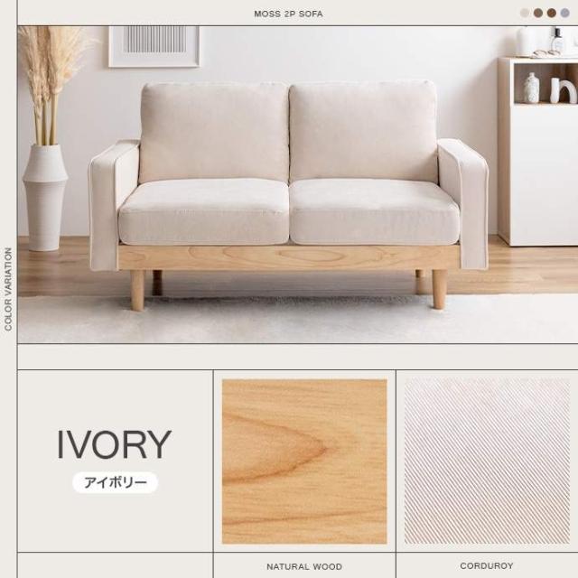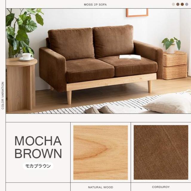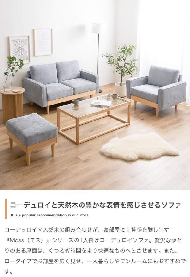 コーデュロイ×天然木の組み合わせが、お部屋に上質感を醸し出す『Moss(モス)』シリーズの2人掛けコーデュロイソファ。