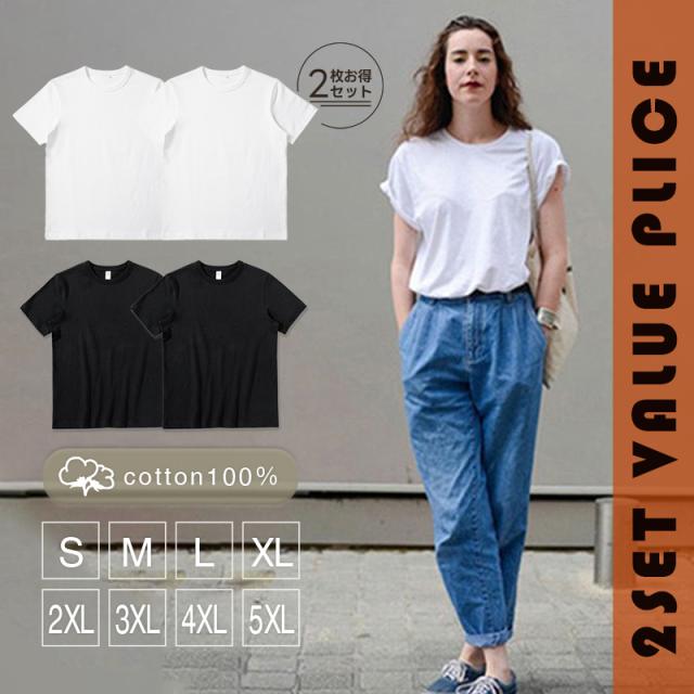 お得な2枚セット Tシャツ 半袖 袖 無地 メンズ レディース ユニセックス 綿 コットン 厚手 丸首 通気性 快適 2枚セット お得 激安 サイズ豊富 S-5XL 黒 白