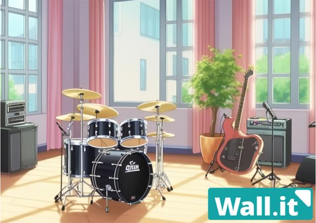 【Wall.it A4 フィギュアディスプレイケース専用背面デザインシート 横向】 軽音 音楽部 部室 学校 教室 リビング 楽器 ドラム ギター ベース けいおん