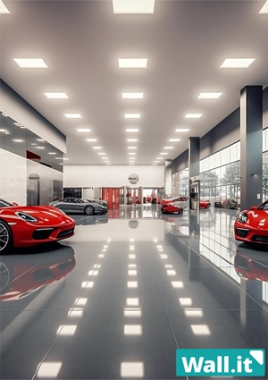 【Wall.it A4 フィギュアディスプレイケース専用背面デザインシート 縦向】 カーディーラー 自動車 ショールーム 高級車 展示場 風景 背景