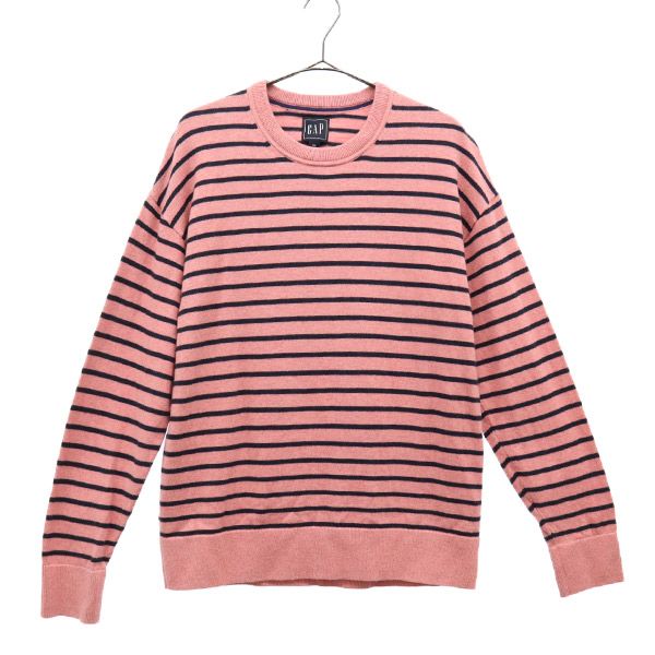 ギャップ ボーダー 長袖 コットン ニット XS ピンク×ネイビー GAP セーター レディース