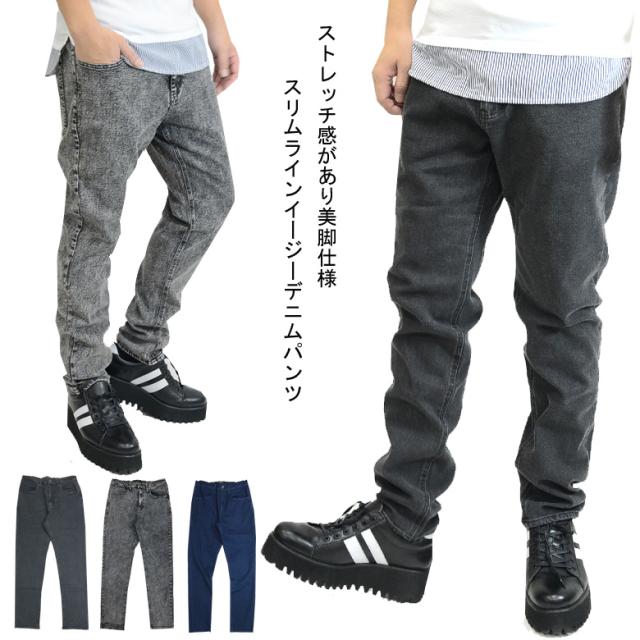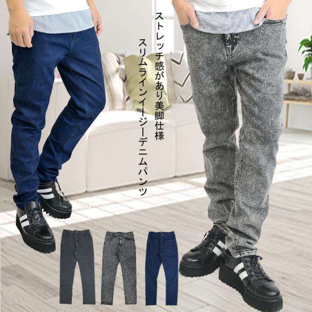 【閉店セール】ストレッチスリム系イージーデニムパンツメンズ ストレッチ 6273y233 強ストレッチ イージパンツ キレイ目 テーパード ジーパン デニム パンツ ストレッチ メンズ ブラック ケミカルブラック インディゴ S M L XL