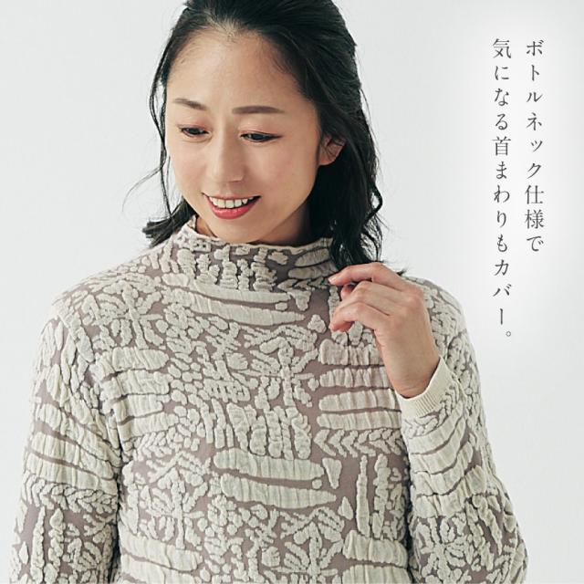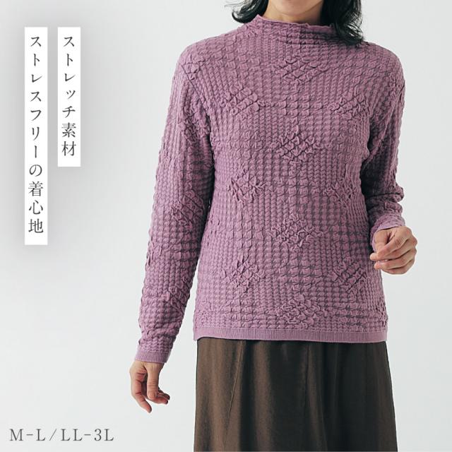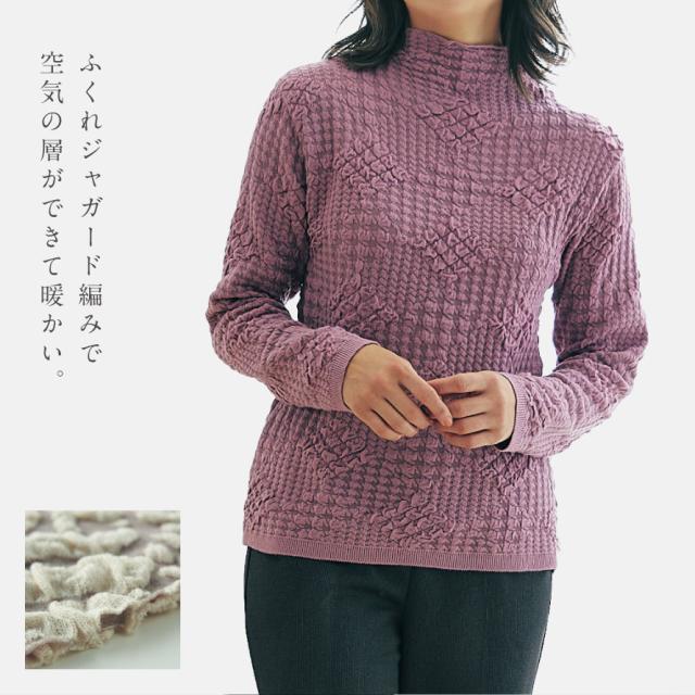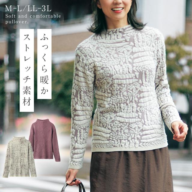 ジャガード トップス プルオーバー レディース ふくれジャガード カットソー ミセス きれいめ 日本製 膨れジャガード暖かプルオーバー M L LL 3L 大きいサイズ ゆったり 50代 60代 70代 婦人 ミセスファッション