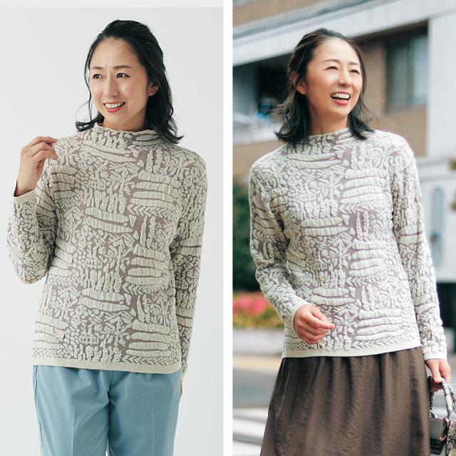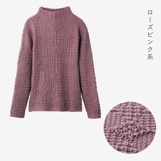 ジャガード トップス,ふくれジャガード,プルオーバー レディース,プルオーバー,ボトルネック,ふくれ,ジャガード,ふっくら,ストレッチ,伸縮性,伸びる,動きやすい,日本製,ローズ,ピンク,グレージュ,M,L,LL,3L,大きいサイズ,大きめ,ゆったり,春,夏,春夏,大人,レディース,女性,お年寄り,高齢者,シニア,50代,60代,70代,80代,おしゃれ,お洒落,オシャレ,かわいい,可愛い,シンプル,カジュアル,きれいめ,体型カバー,コーディネート,着回し,細見え,着痩せ,着心地,ミセス,ミセスファッション,婦人,