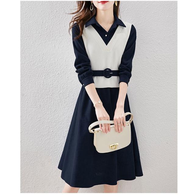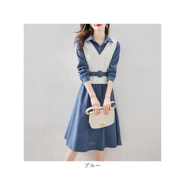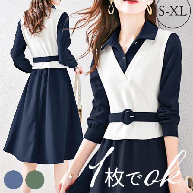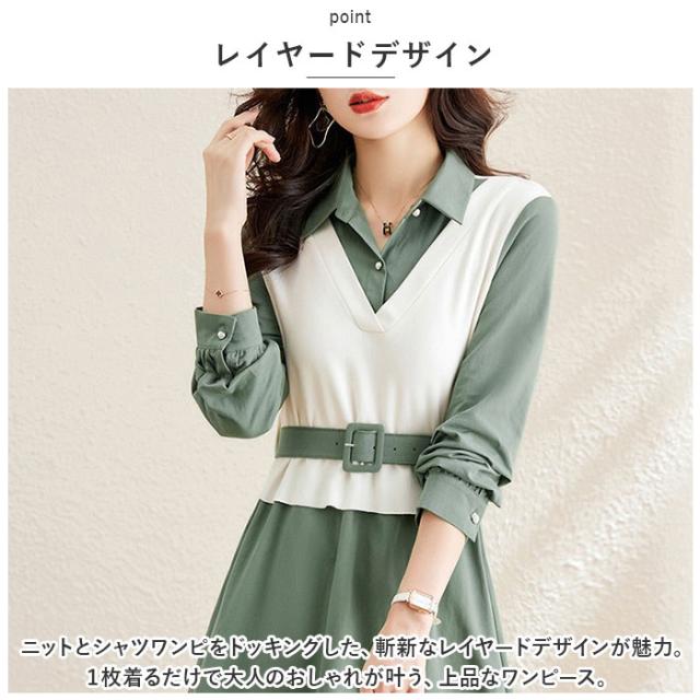 ワンピース レディース ニット 通販 ニットワンピ ワンピ シャツワンピース シャツワンピ 普段着 長袖 切り替え Aライン ベルト付き 膝丈 無地 きれいめ お呼ばれ 体型カバー