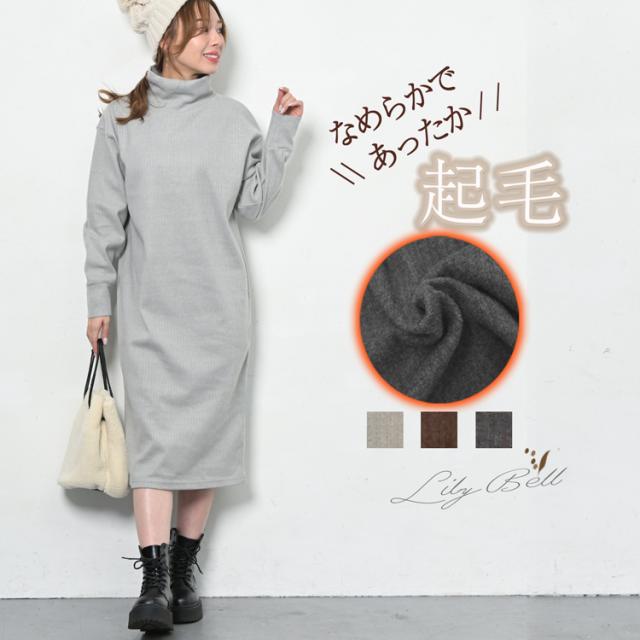 ・タートルネックで襟元も可愛い主役ニットワンピース。リブ起毛素材で大人可愛いシンプルベーシックなカジュアルスタイルを楽しめます。