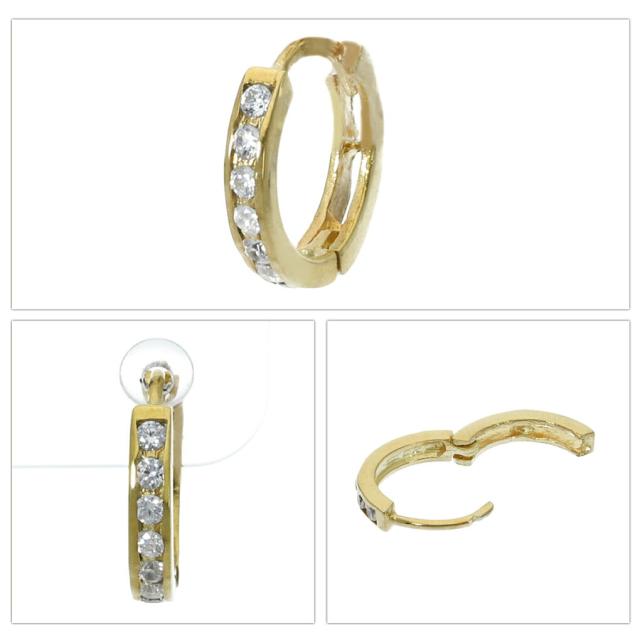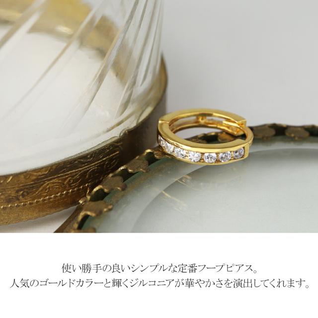 ジルコニア シルバー フープピアス 1P 片耳用 ゴールドコーティング シルバーピアス リングピアス 金 シルバー925 中折れ式 丸型 定番 華やか