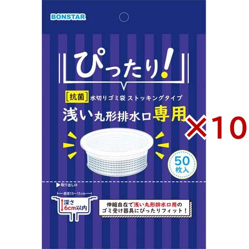 ボンスター 抗菌 浅い丸形排水口専用 水切袋ストッキング(50枚入×10セット)[水切りネット 三角コーナー]