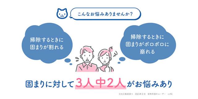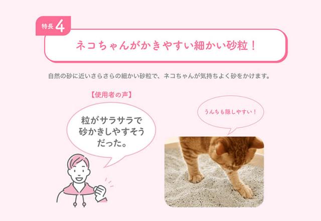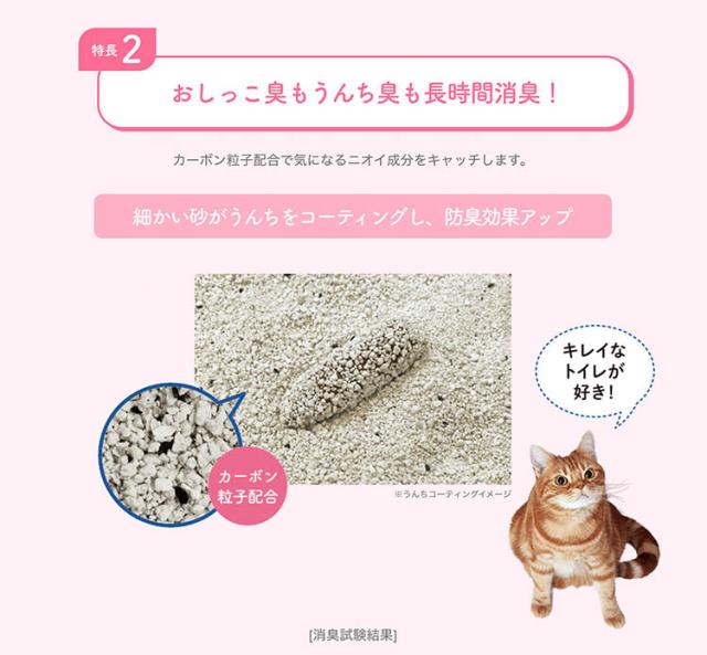 ネコちゃんがかきやすい細かい砂粒で、うんちを隠しやすい!さらに、砂がうんち全体をコーティングして防臭効果を高めます。