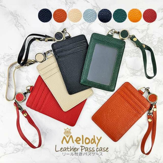 パスケース リール付き 12701 Melody メロディ リールス付き パスケース 定期入れ ICカードケース おしゃれ かっこいい シンプル 男性 メンズ 女性 レディース 男女兼用 ユニセックス 通勤 旅行 ブラック キャメル ベージュ ライトブルー ネイビー グリーンイエロー レッド