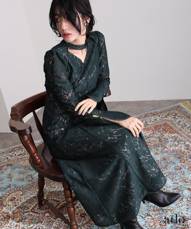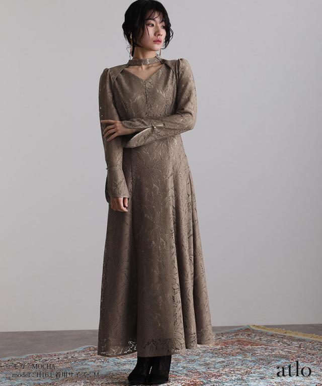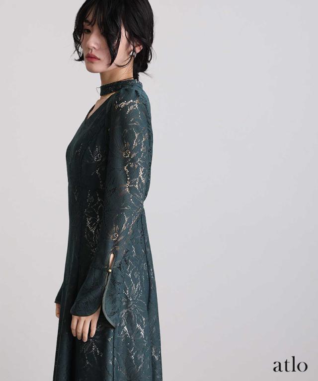 クラシカルなスタンドカラーながらも、スタイリッシュに魅せてくれるデコルテのカッティングデザインがこだわりのポイント。