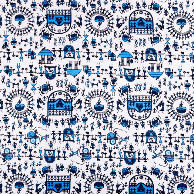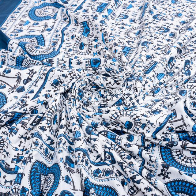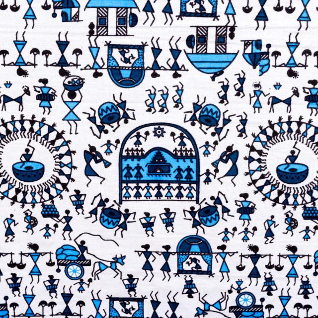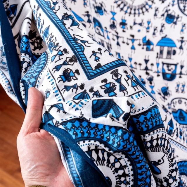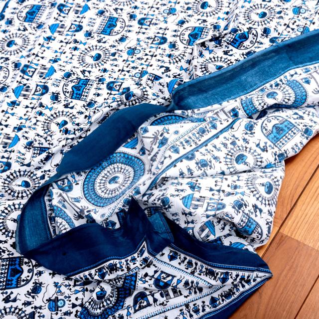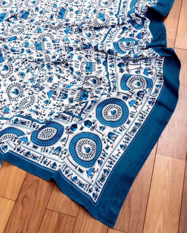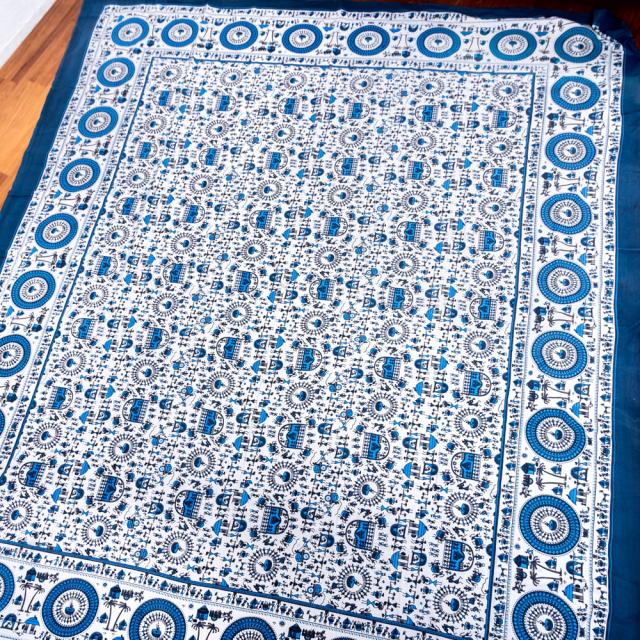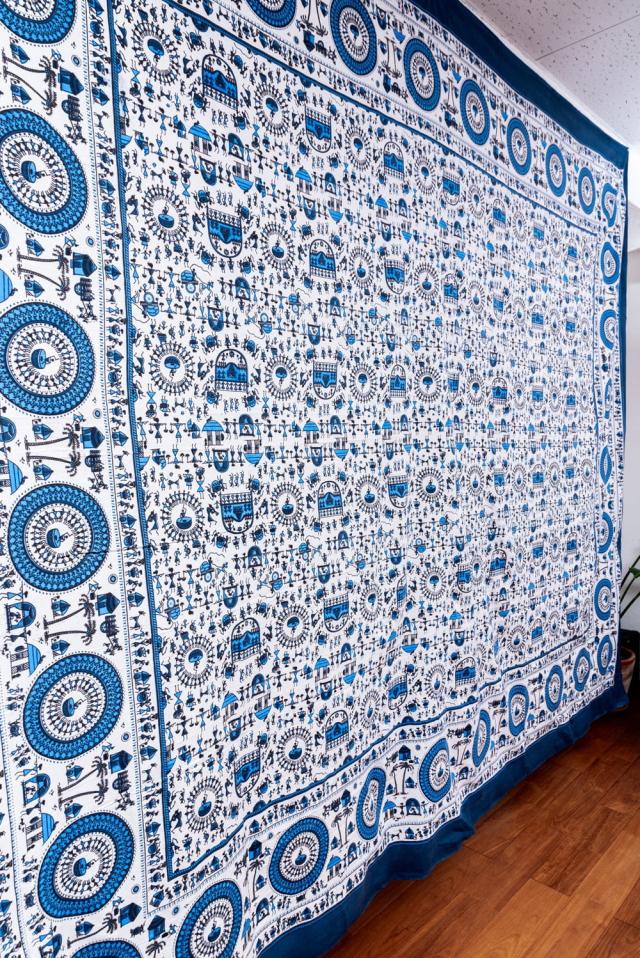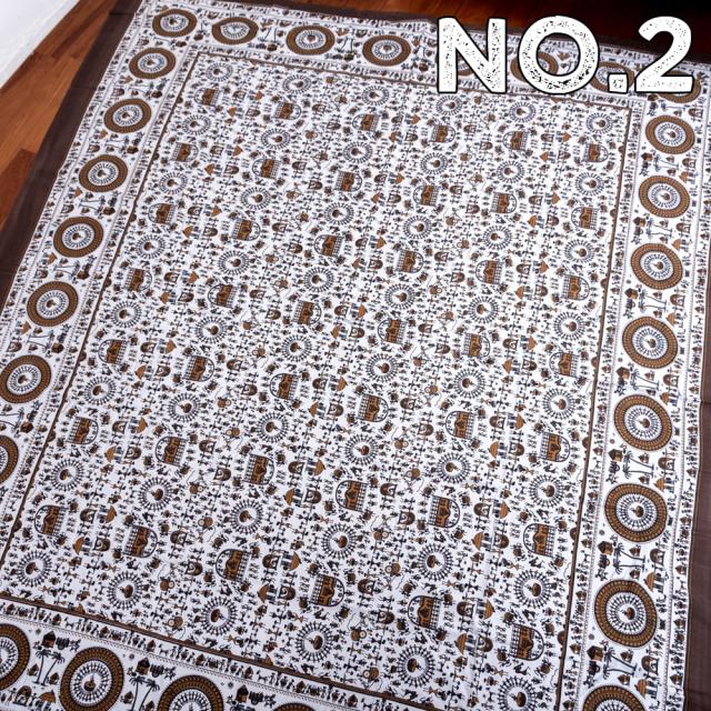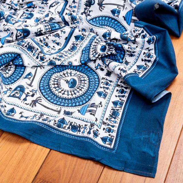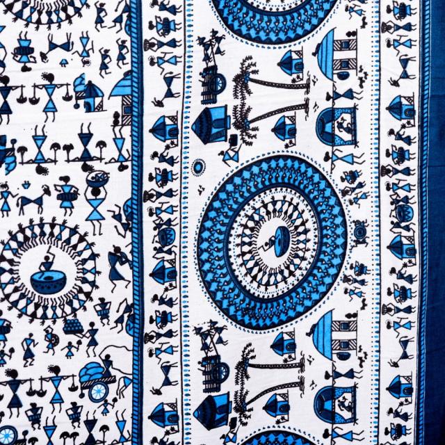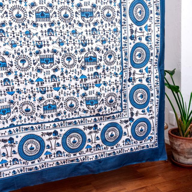 マルチクロス 先住民ワルリ族のワルリ画〔約215cm×約256cm〕 / テーブルクロス ベッドシーツ 大きなこたつカバー ベッドカバー お部屋の装飾 ソファーカバー マルチカバー 目隠し布 壁掛け布 背景布 アジア インド ファブリック エスニック