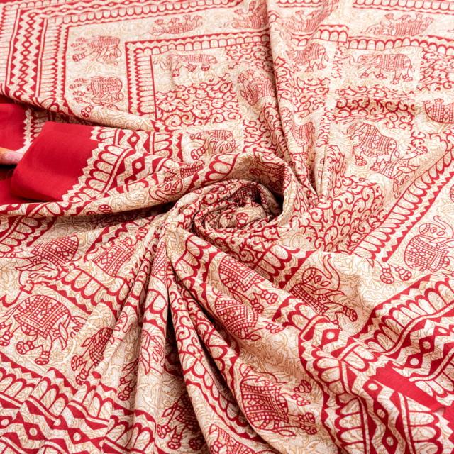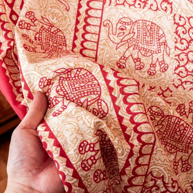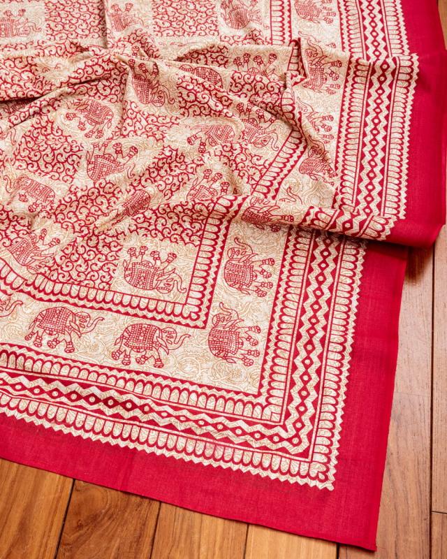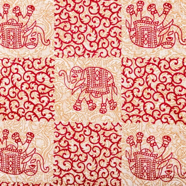 いかにもインドらしいモチーフが魅力的なインド綿のマルチクロスです。インドコットンに、ラクダやゾウ、ペイズリーやマンダラ模様など、インドならではのデザインをプリントしました。