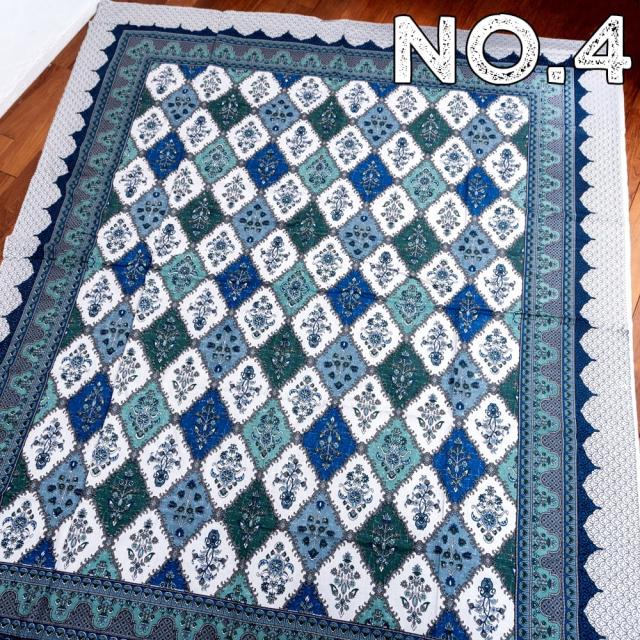 No.4:ブルー系マルチクロス - ダイヤ柄〔約207cm×約258cm〕 / テーブルクロス、マルチクロス、ベッドシーツ、大きなこたつカバー、ベッドカバー、お部屋の装飾、ソファーカバー、タペストリー、マンダラ、曼荼羅、更紗、唐草、インド綿 布、バティック、パーテーション、ボタニカル、更紗 布とファブリック 【インドとアジアンの布