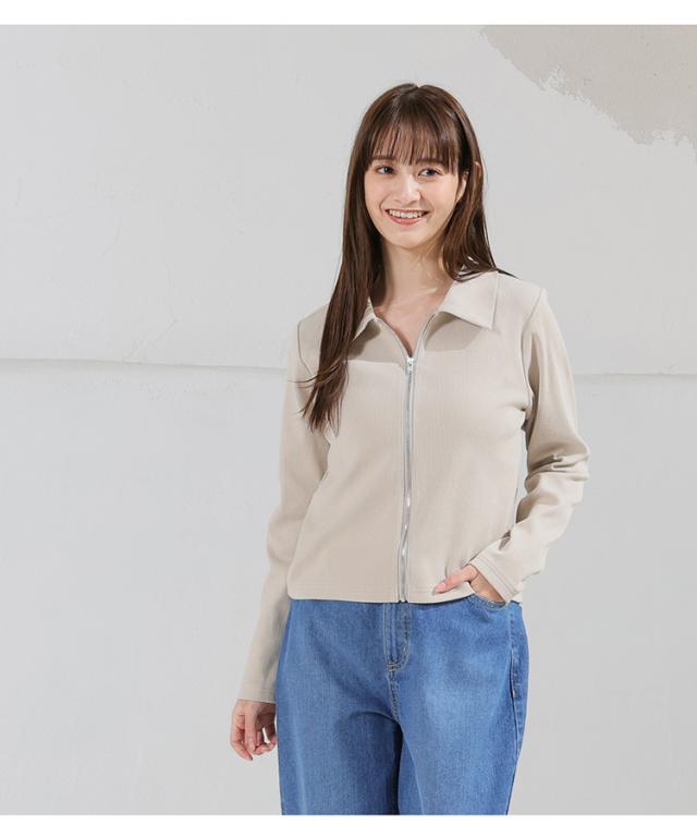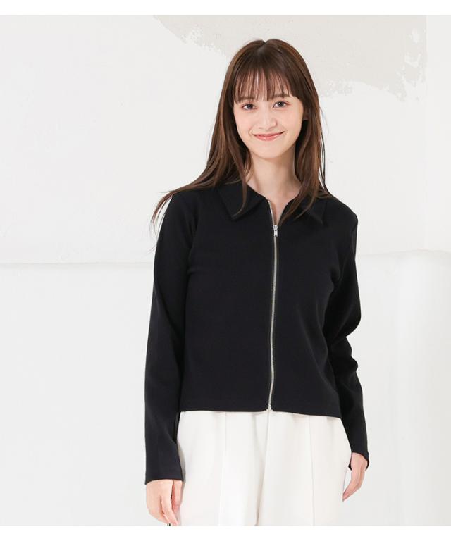 ジップを開けてカーデとしてはもちろん、閉めてトップス風に着るのも◎