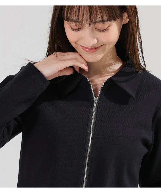 トップス カーディガン 羽織り ジャケット 長袖 ストレッチ ジップアップ SALE Honeys ハニーズ ジップ使いカーデ