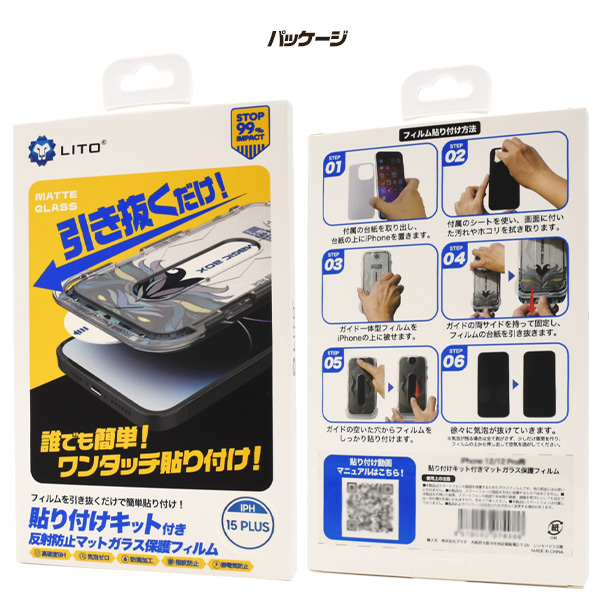 簡単貼り付け 反射防止 ガラスフィルム iPhone15Pro用 マットガラス ズレない 綺麗に貼れる 貼り付けキット付き 保護フィルム 保護シール 傷防止 保護シート 保護シート キズ防止 飛散防止 液晶保護シール 液晶画面保護 汚れ防止 スマホ保護フィルム