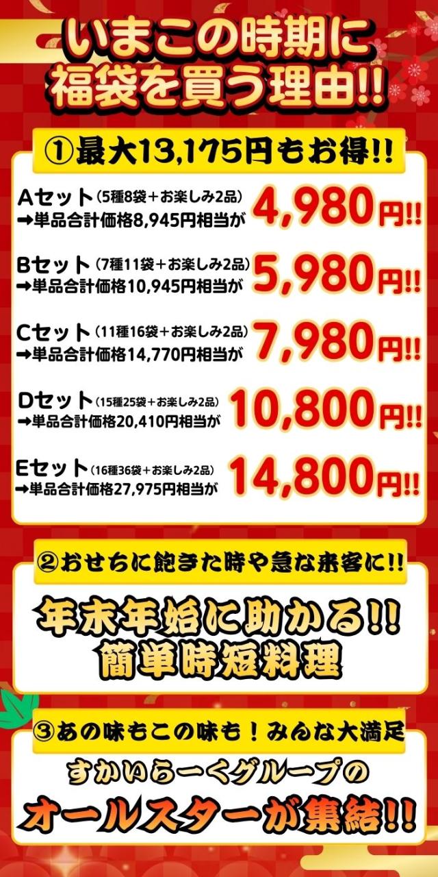 すかいらーく 2026年新春大吉福袋 Aセット(5種8袋)+お楽しみ2品 / ガスト バーミヤン ジョナサン から好し