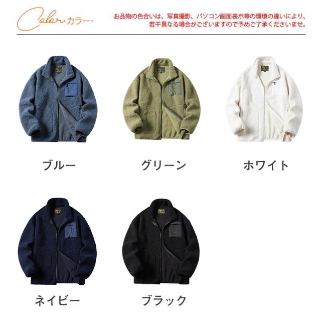 ボアジャケット メンズ フリースジャケット 裏ボア ミリタリー ブルゾン 立ち襟 あったか 厚手 ゆったり 防寒 暖か 無地 カジ