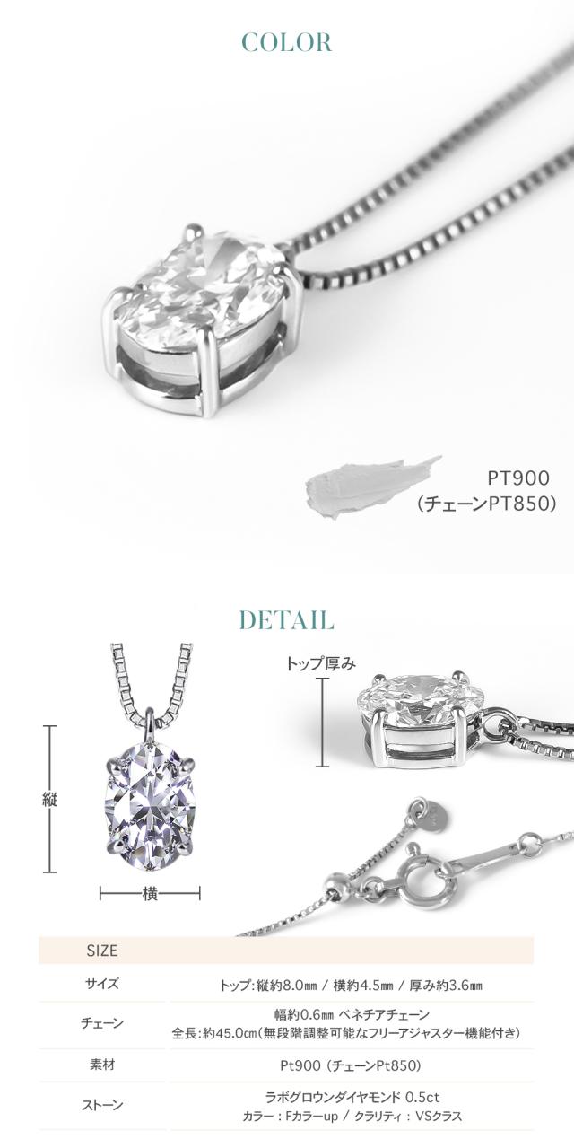 ダイヤモンド ネックレス 一粒 ダイヤモンドネックレス ダイヤネックレス 0.50ct オーバル 一粒ダイヤ プラチナ PT900 PT850 ラボグロウン レディース ジュエリー アクセサリー シンプル ブランド 誕生日 クリスマス プレゼント 女性 ギフト