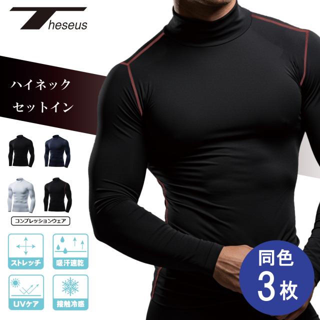メンズ コンプレッション 長袖 ゴルフシャツ 同色3枚セット シャツ インナー ウェア スポーツ ジム ジョギング ランニング サッカー ウェア ゴルフ スーツ 下着 春 夏 秋 冬 冷感 速乾 軽量 伸縮性 THESEUS テセウス TN12