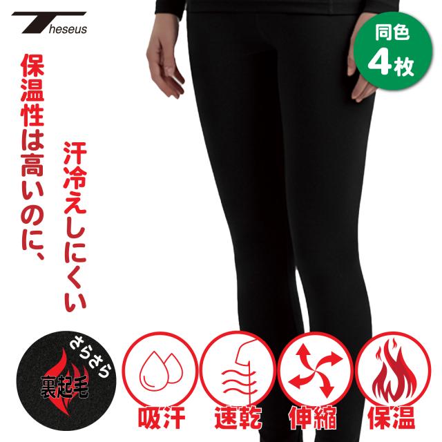 ウィメンズ 裏起毛 コンプレッション レギンス 同色4枚セット パンツ タイツ インナー ウェア スポーツ ジム ジョギング ランニング サッカー ウェア トレーニングウェア スーツ 下着 春 夏 秋 冬 冷感 速乾 軽量 伸縮性 THESEUS テセウス TN59