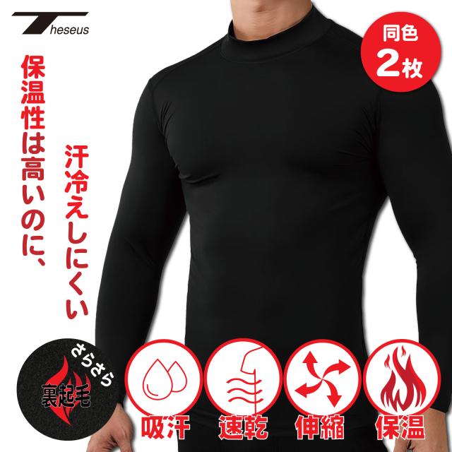 テセウス 裏起毛 コンプレッション スポーツインナー メンズ 冬用 コンプレッションウェア 長袖 ハイネック 吸汗速乾 UVカット 防寒 保温 アンダーシャツ THESEUS
