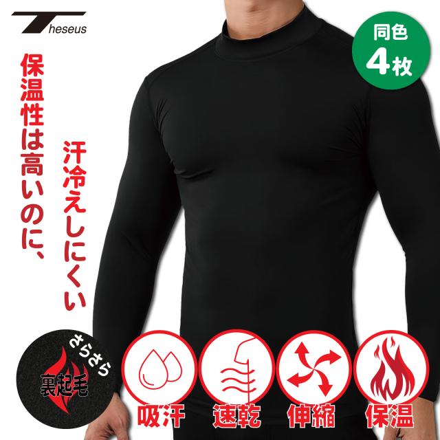 メンズ 裏起毛 コンプレッション 長袖 ゴルフシャツ 同色4枚セット シャツ インナー ウェア スポーツ ジム ジョギング ランニング サッカー ウェア トレーニングウェア 下着 春 夏 秋 冬 保温 耐寒 速乾 軽量 伸縮性 THESEUS テセウス TN32