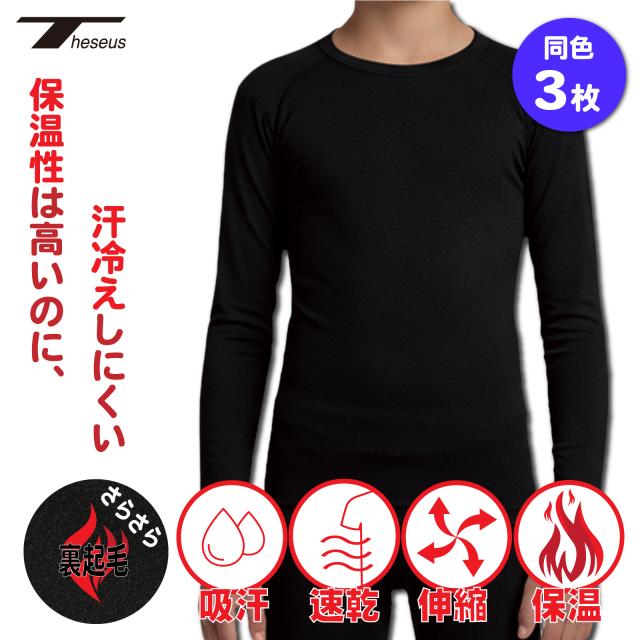 ジュニア 裏起毛 コンプレッション 長袖 ゴルフシャツ 同色3枚セット シャツ インナー ウェア スポーツ ジム ジョギング ランニング サッカー ウェア ゴルフ 下着 春 夏 秋 冬 保温 耐寒 速乾 軽量 伸縮性 THESEUS テセウス TN33