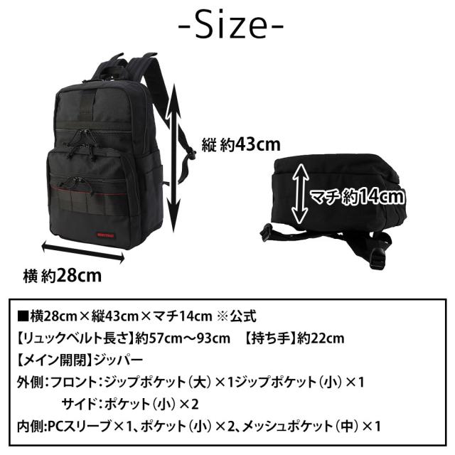 | 備考 | 【スペック】 内装: PCスリーブ×1(クッション材搭載、13インチ程度のPCまで対応) ポケット(小)×2 メッシュポケット(中)×1 外装: フロント:ジップポケット(大)×1 ジップポケット(中)×1 (マチあり。内側には、ポケット(中)×1と(小)×1、ペンポケット×1、ジップポケット(中)×1を搭載) ジップポケット(小)×1 サイド:ポケット(小)×2 【注意】 ※ネイビーは黒に近い色味となっております。 キーワード: プレゼント ギフト ラッピング ラッピング無料 メンズ レディース 男性 女性 通勤 通学 ビジネス 学生 ブランド ポイント消化 MODULE WARE モジュールウェア ブリーフィング BRIEFING 大容量 B4サイズ A4サイズ B5サイズ 軽量 スポーツ 正規品 ブラック ネイビー 耐久性 旅行 トラベル ミリタリー リュックサック デイパック バックパック 軽い ユニセックス 男女兼用 13インチ PC タブレット 収納 500mlペットボトル ニューバッグワカマツ | ||