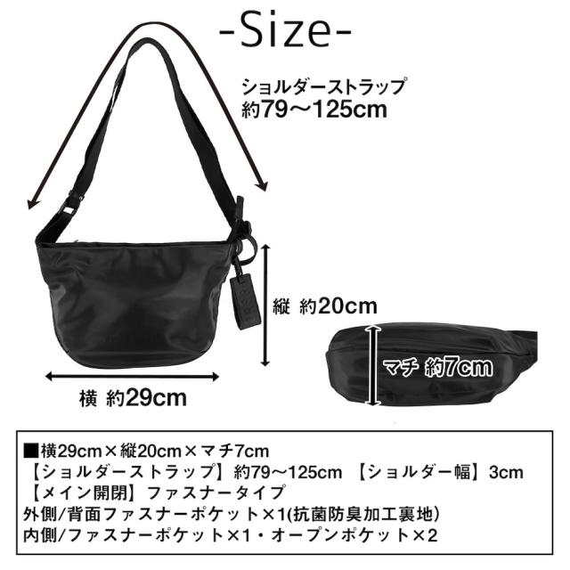 | サイズ(約) ※当店実寸値 | 横29cm×縦20cm×マチ7cm ※公式 肩ひも:長さ79〜125cm、幅3cm | ||