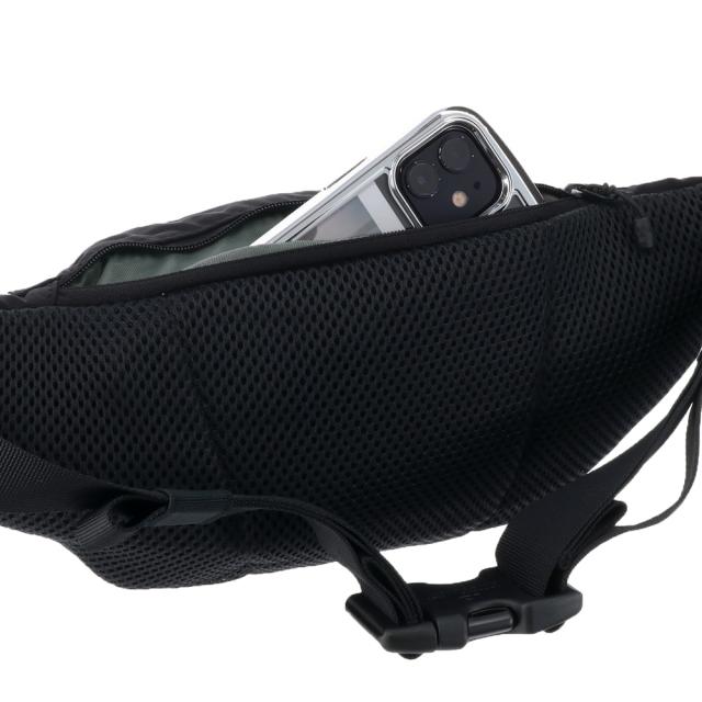 財布や携帯電話など、日常の身の回りの小物の収納に便利な1リッター容量のスリムなウエストバッグです。
