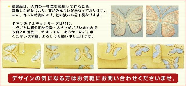 | 素材 | ボディー:牛革(イタリア製)蝶型押し 付属:牛革(日本製) 裏地:コットン (ピンク/ベージュ)、レーヨン(アクアイエロー/ピーチ) | ||