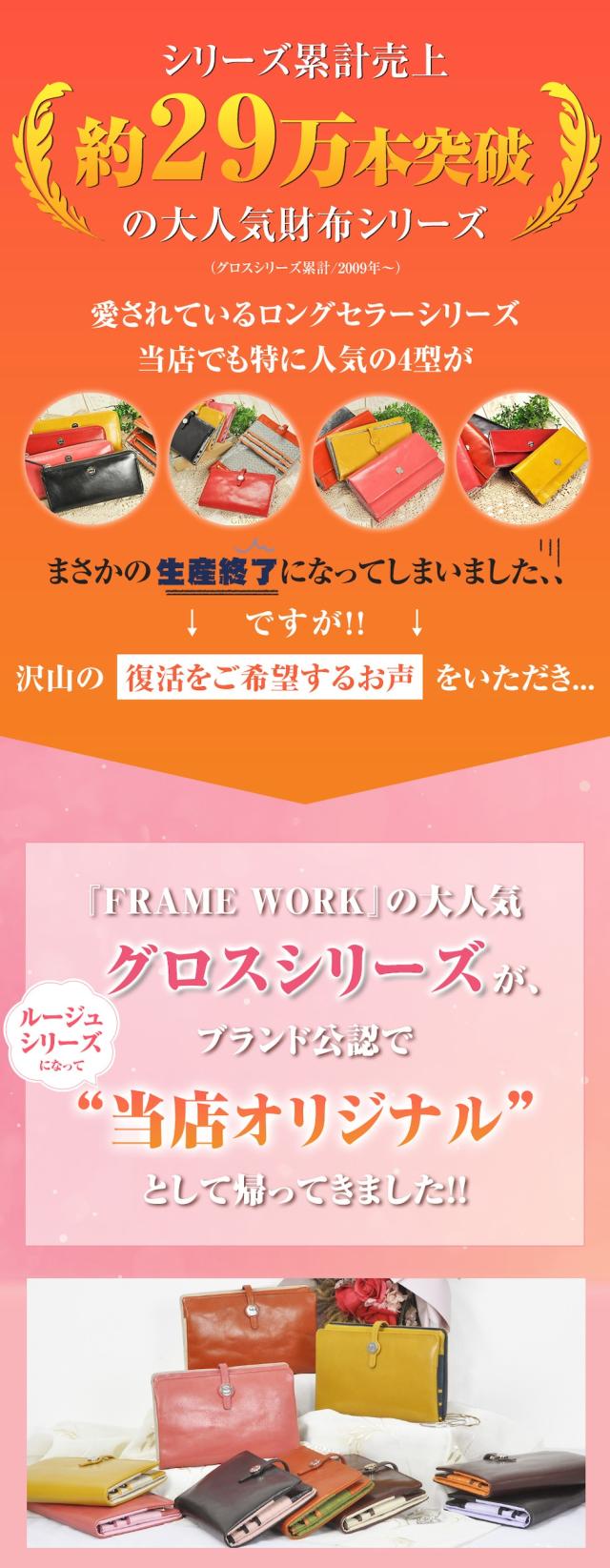 フレームワーク 財布 長財布 レディース財布 小銭入れあり 本革 女性用 かわいい 大容量 通帳ケース FRAME WORK ルージュ 42080