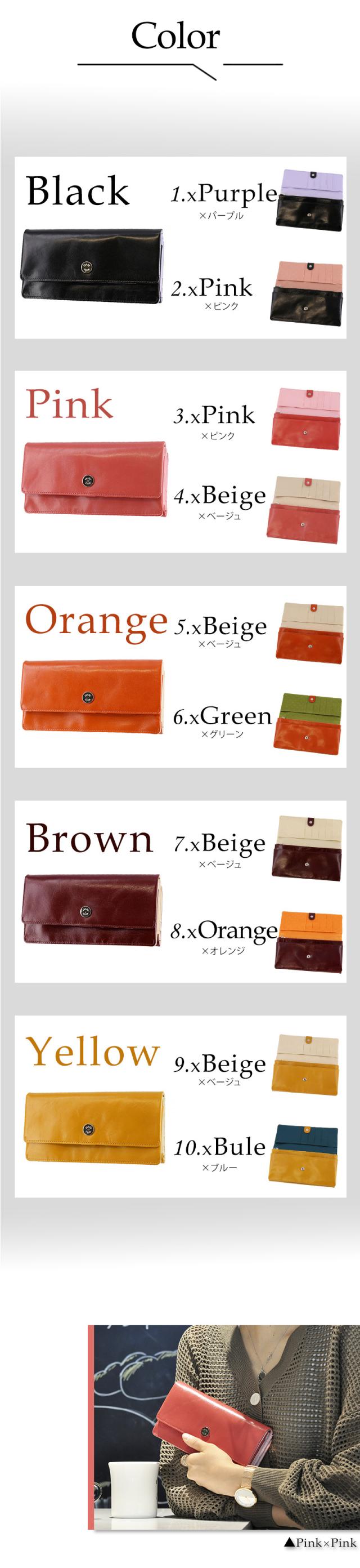 カラー:1.ブラック×パープル,2.ブラック×ピンク,3.ピンク×ピンク,4.ピンク×ベージュ,5.オレンジ×ベージュ,6.オレンジ×グリーン,7.ブラウン×ベージュ,8.ブラウン×オレンジ,9.イエロー×ベージュ,10.イエロー×ブルー