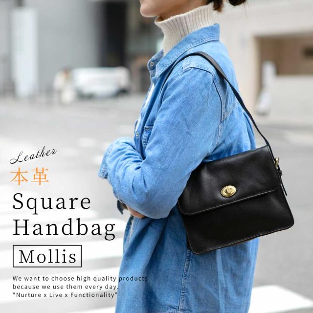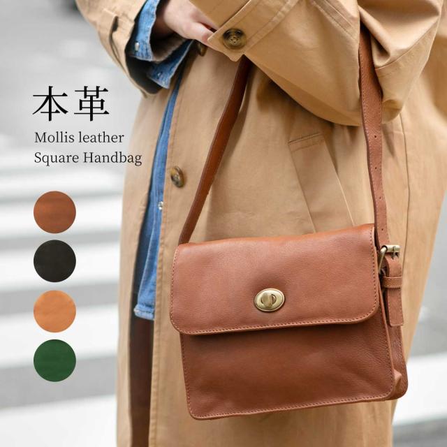 ハンドバッグ レディース 本革 小さめ ショルダー 大人 バッグ シンプル ミニ 肩掛け アンティーク ひねり金具 収納 2Way Mollis レザー 可愛い 革 軽量 クリスマス Xmas プレゼント ギフト ブランド