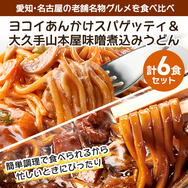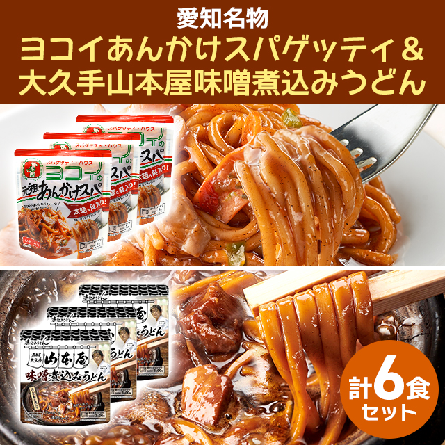 愛知名物 ヨコイあんかけスパゲッティ & 大久手山本屋味噌煮込みうどん アソート 計6食セット 名古屋グルメ 人気 常温 常備 お取り寄せ 送料無料 定番 送料込 銘店