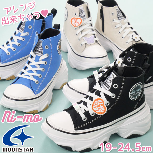 送料無料 スニーカー ハイカット キッズ ジュニア 女の子 SS 春夏 新作 春新作 夏新作 人気 流行 定番 2024 NM J100 ニーモ 厚底 紐靴 スタイルアップ カスタマイズ においケア サイドファスナー付き 抗菌 防臭 ブラック 黒 アイボリー サックス 子供靴