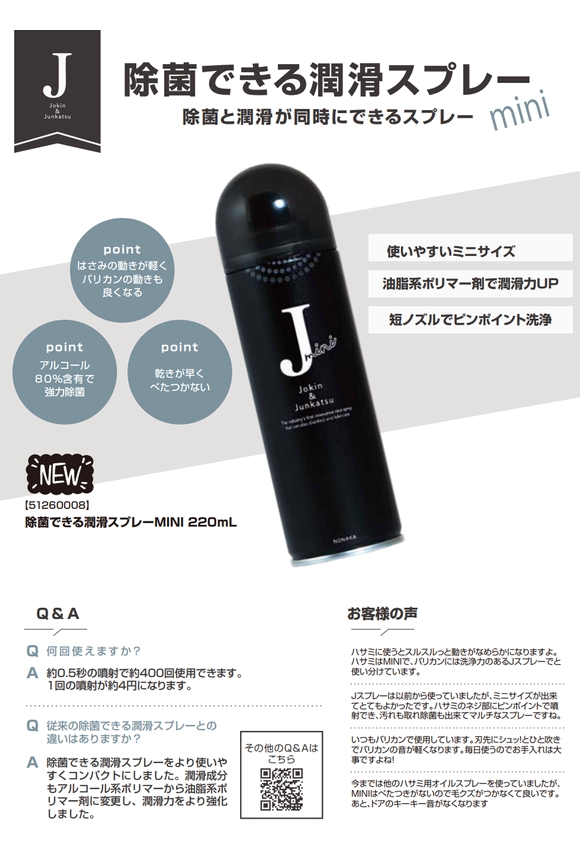 | 商品名 | 除菌できる潤滑スプレー MINI 220mL JAN:4534765000228 | ||