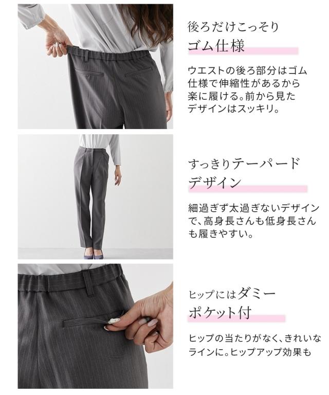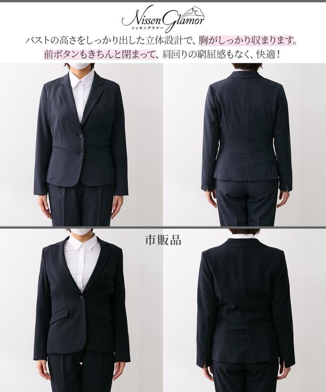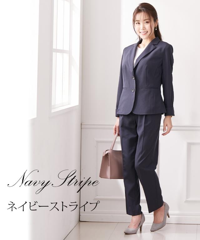 スーツ レディース 大きい胸専用 RISPY 洗える ストレッチ テーラード ジャケット テーパード パンツ ネイビーストライプ/ブラック FLL ニッセン nissen