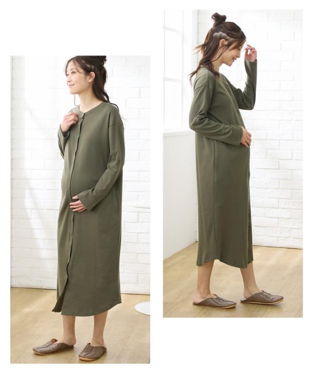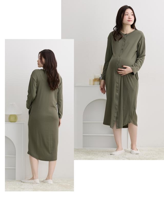 袖部分はロールアップ仕様になっているので、春夏秋の3シーズン使える! 身生地は年間で使用できる素材のスムースを使用 カットソー素材でやわらかく、着心地ラクなマタニティネグリジェです ボタンがスナップボタンになっているので、簡単に外して授乳ができます 前がボタンで全開するので、寝ながらの診察や入院時に重宝します 特別な授乳口がないので、マタニティ、授乳期が終わっても使いやすい 裾のやわらかなカーブラインやパジャマっぽくないカラー使いで、急な宅配便でもあわてなくてい大丈夫 ボタンを全部開けて羽織として外着にしても使えます ・産前から産後に使う ・授乳機能付 ・春〜秋対応