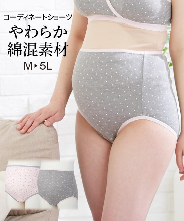 ショーツ マタニティ ママ インナー ドット柄 産前 グレー/ピンク マタニティ4L〜5L ニッセン nissen