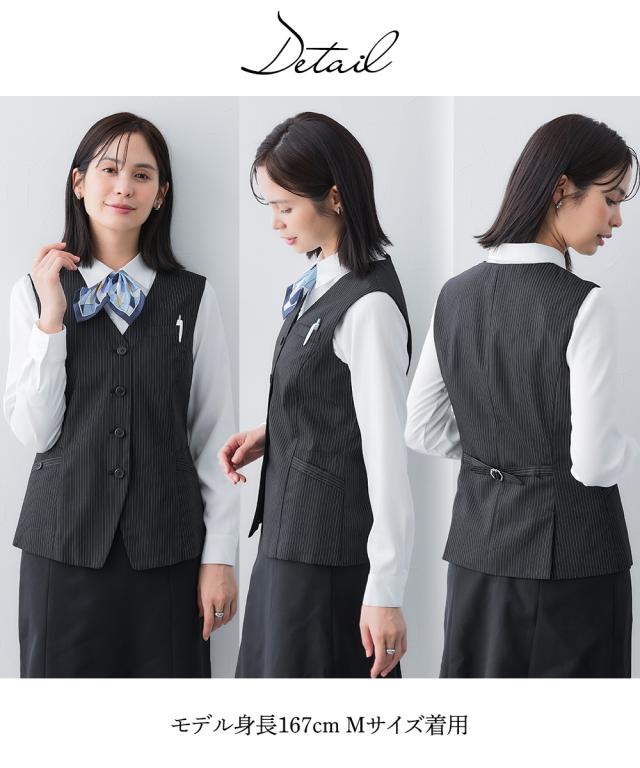 ◆体型カバーもかなうちょうどよい長め丈のベストのストライプ柄が登場!