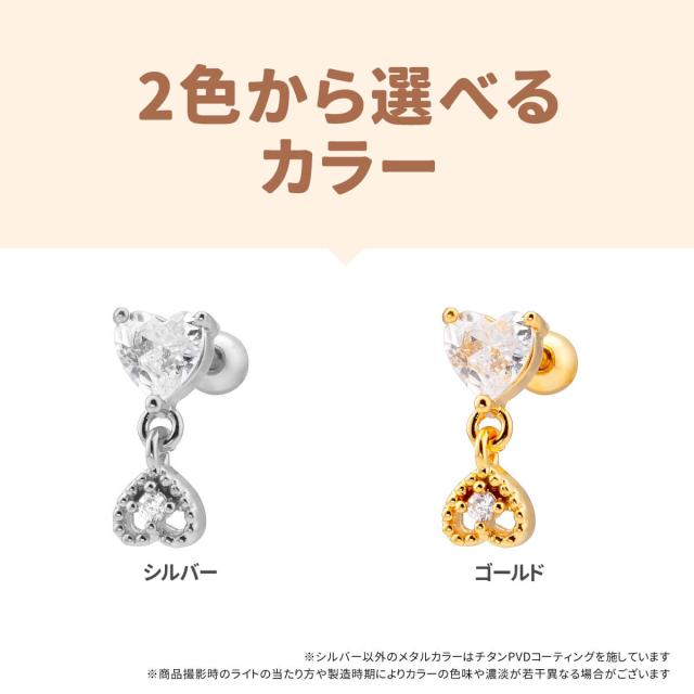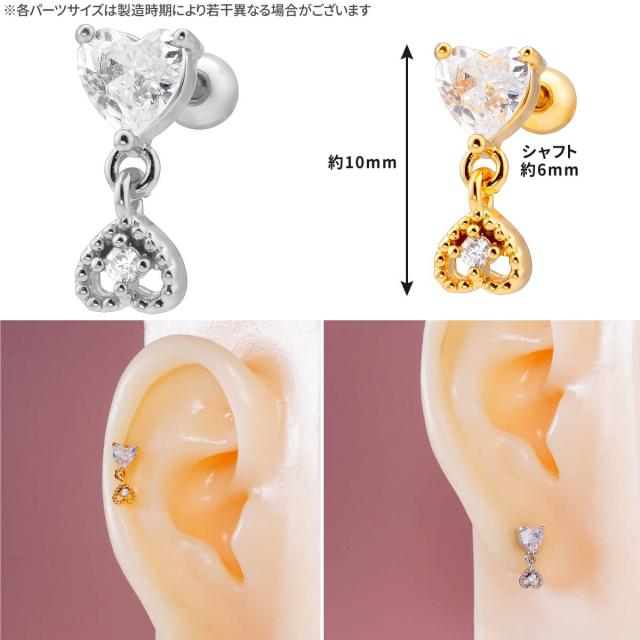 ジュエル ハート チャーム ストレートバーベル 14G 16G 18G 20G サージカルステンレス ジルコニア ヘリックス 軟骨ピアス ボディピアス