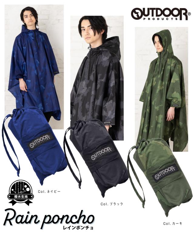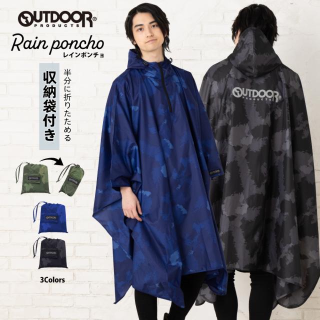レインポンチョ アウトドアプロダクツ レインコート メンズ レディース 男女兼用 フリーサイズ レインウェア おしゃれ かわいい 自転車 OUTDOOR 入学 通勤 通学 フェス 合羽 雨具 ブランド 収納袋 送料無料 06003221